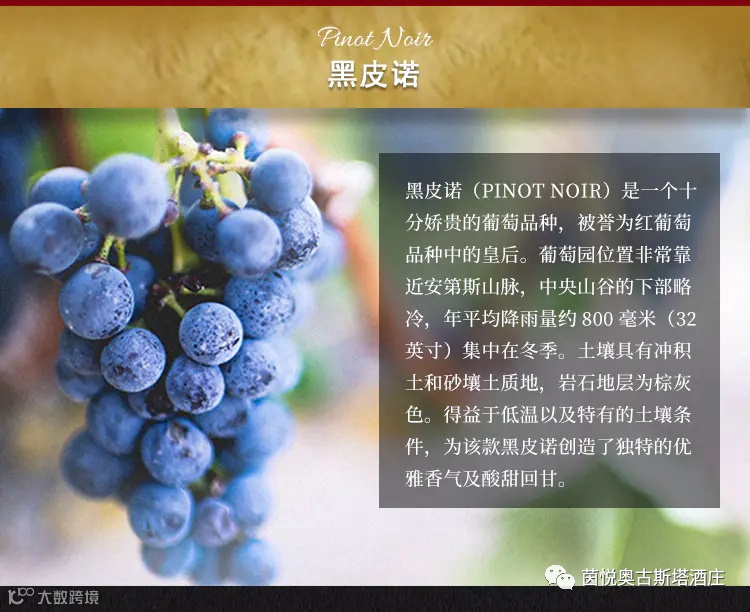 如果要从那么多葡萄品种中选出一个自带「贵族」属性的,那一定非黑皮诺(Pinot Noir)莫属。它弱不禁风,对环境极其挑剔,容易生病,还容易「水土不服」,真的是一个非常难照顾的品种。