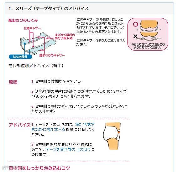 对此,花王官网也有解释。漏尿的原因包括:尿布大小不合适,或者没有穿戴好,不合身;尿布戴着的时候,宝宝的动作比较大;立体护围没有扶起来,没起到堤防的作用;男孩的小JJ向上等……(花王官网相关页面参考:http://www.kao.com/jp/qa/mrs_omutsuall_02.html)