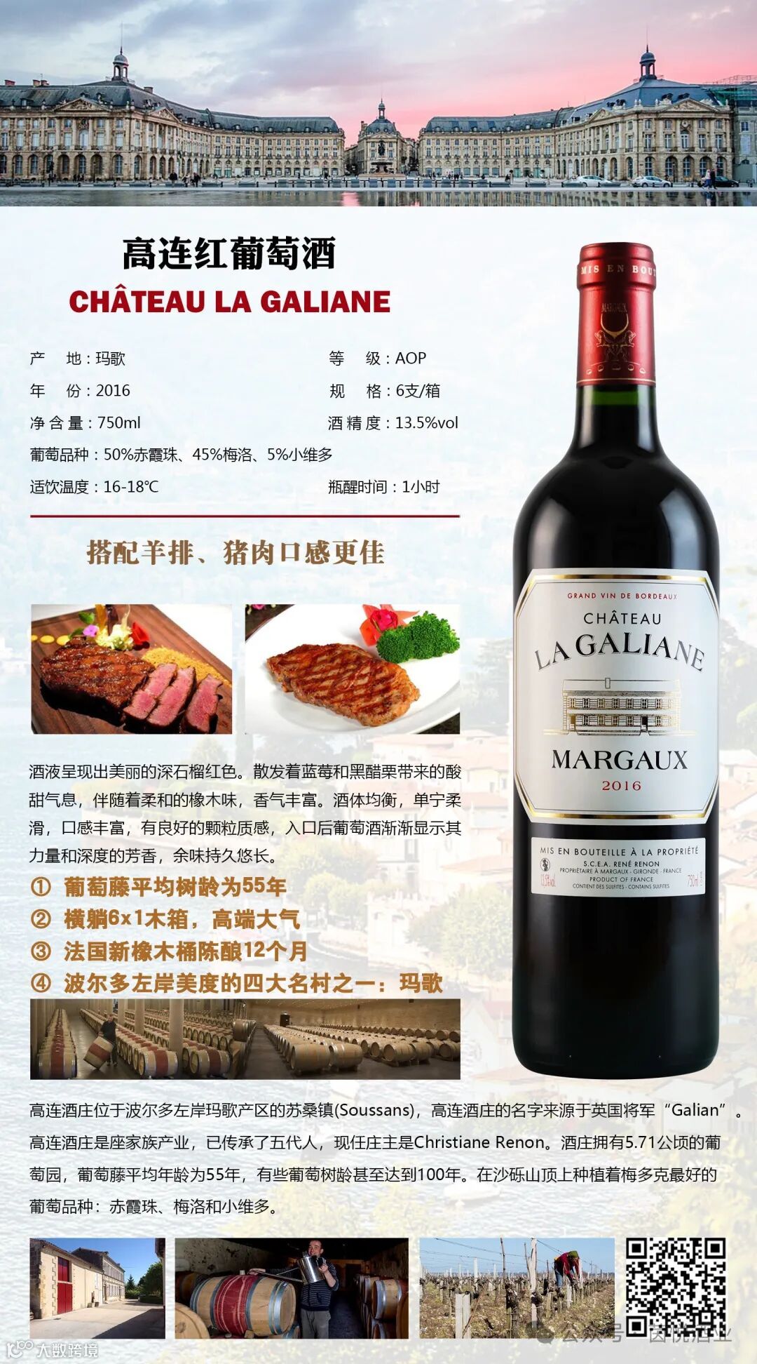 高连红葡萄酒如优雅女性,受砾石和沙砾土壤滋养。它由赤霞珠、梅洛、 小维多调配,百年老藤赋予其圆润优雅韵味。承载着酒庄历史传承与酿酒师匠心智慧,是一款不可多得的佳酿。