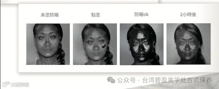 涂抹均匀的防晒产品会在脸上呈现比较规则、颜色相对一致。