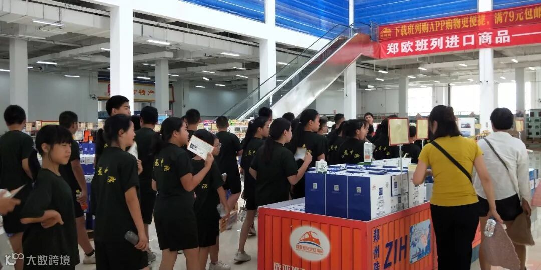 同学们正在参观郑欧进口商品展示体验中心