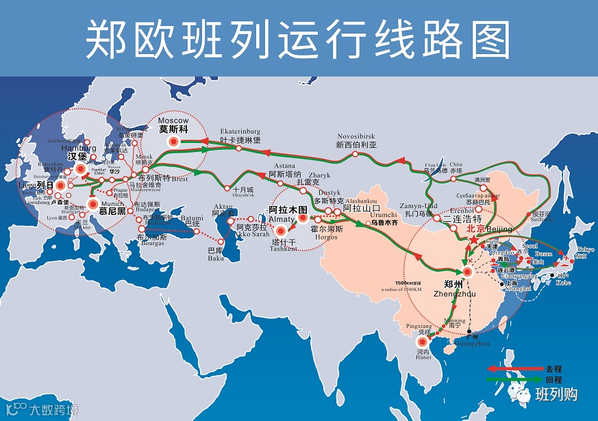 郑欧班列自2013年开行以来,截至2020年4月28日,累计开行3000班,总货值127.48亿美元,总货重154.71万吨。经过近7年的运营,郑欧班列已形成覆盖欧洲、中亚、东盟和亚太(日韩等)的物流网络,形成直达7个目的站点、经过6个出入境口岸的线路网络,基本构建了河南连通欧洲、中亚和东盟及亚太(日韩等)国际物流大通道。