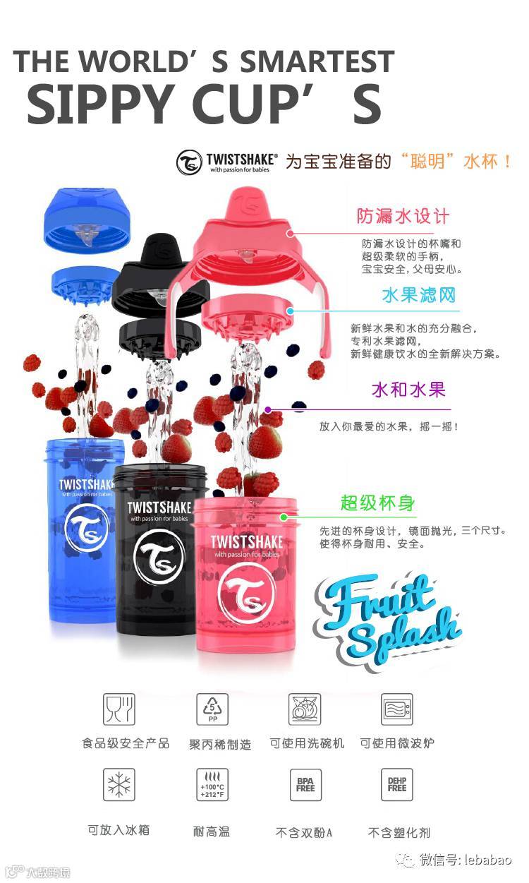 瑞典Twistshake儿童宝宝防漏水果摇摇杯果汁杯成长训练水杯