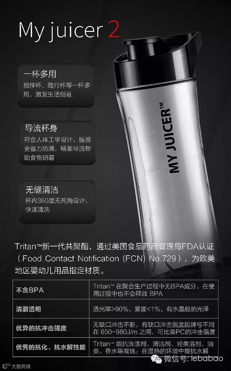 【材质】杯体部分:美国进口Tritan塑料,不含BPA(双酚A)