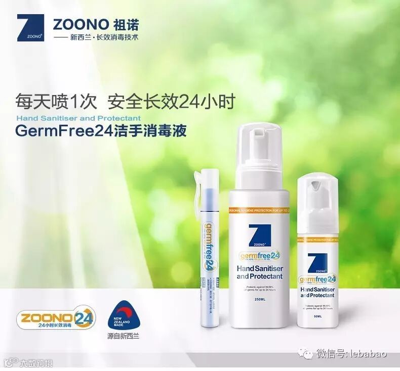 新品!新西兰ZOONO祖诺免洗洗手液——预防手足口消毒液