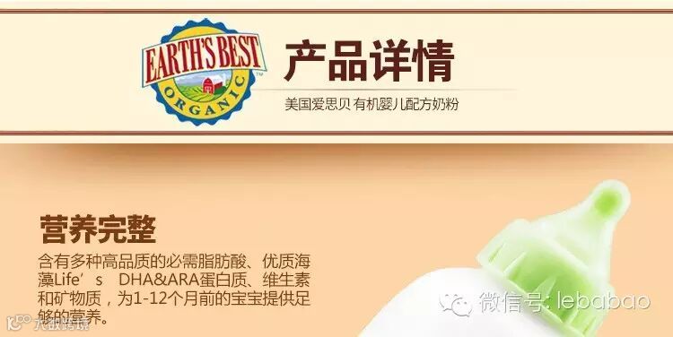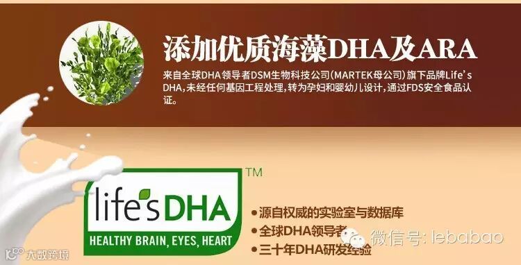 国际定位最高端的全有机奶粉;美国USDA有机认证,犹太族KOSHER超洁净认证;强化铁,双倍Lifes DHA,易消化,提高免疫力。