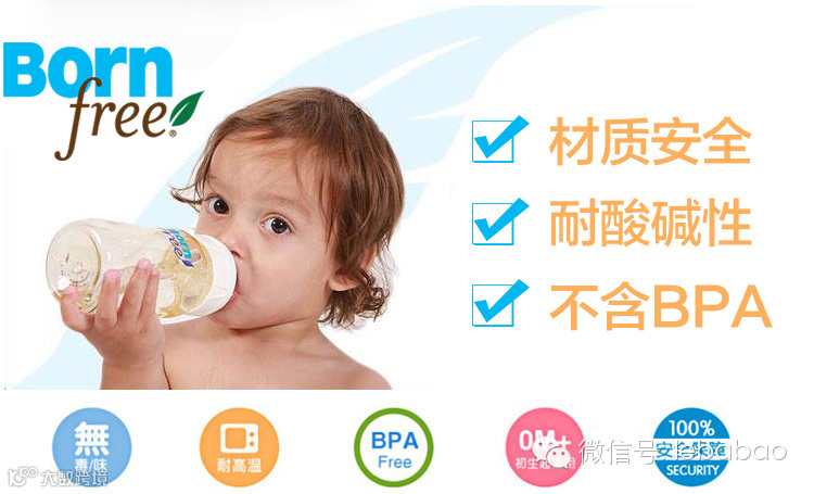 材质安全,耐酸碱性、不含BPA!,独有循环导气防胀气系统,可帮助减少宝宝因吸入空气的肚子绞痛症状和预防中耳炎。Born Free是全球最早的不含BPA(双酚A)材质生产婴儿奶瓶的企业之一,公司即秉承世界的最高标准,为天下的宝宝提供最安全最好的婴儿喂养用品。