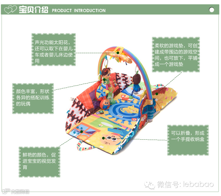 ★ 此款游戏毯可供双面使用,两面的颜色、图案完全不同,带给宝宝更多的乐趣。
