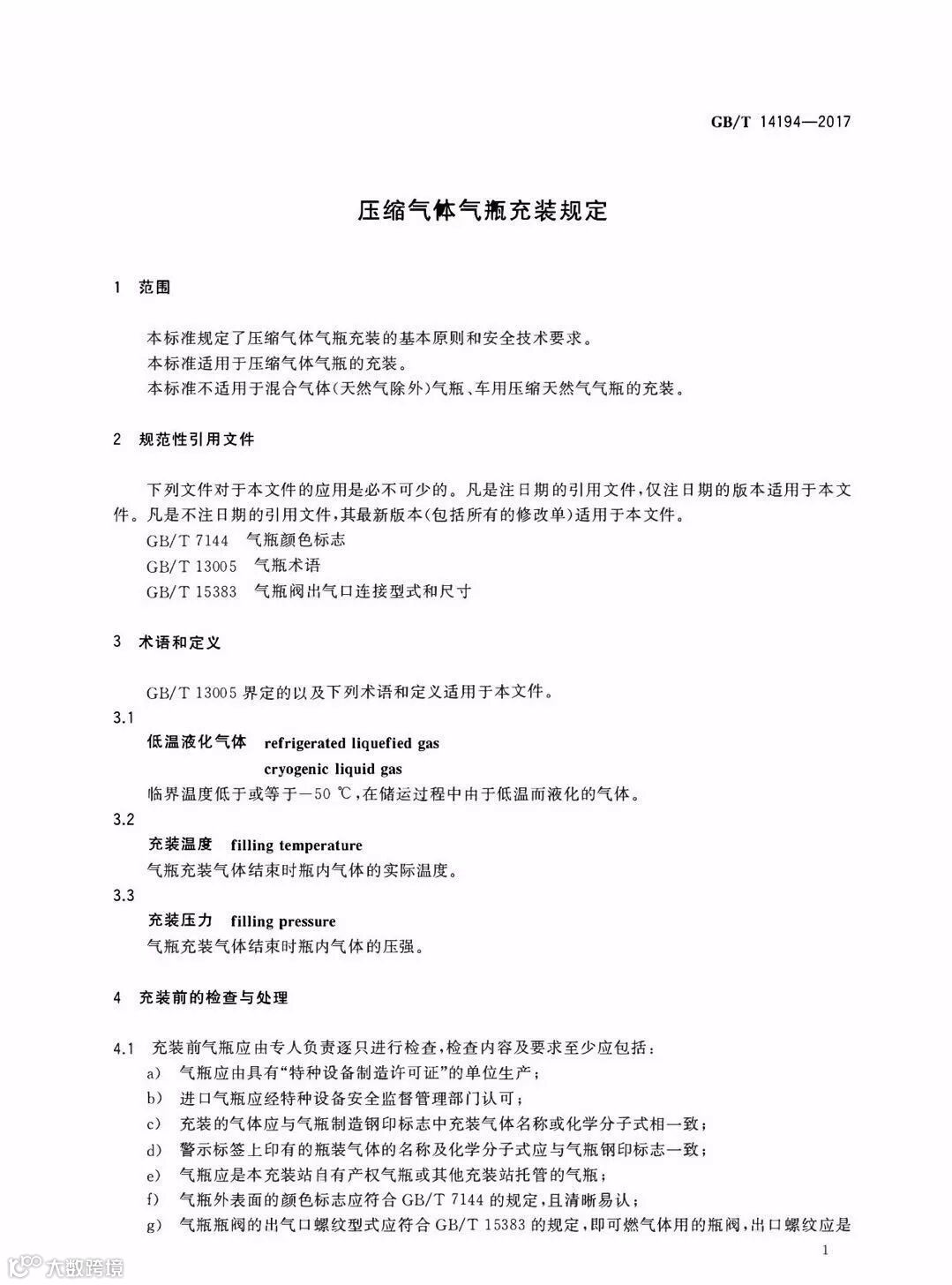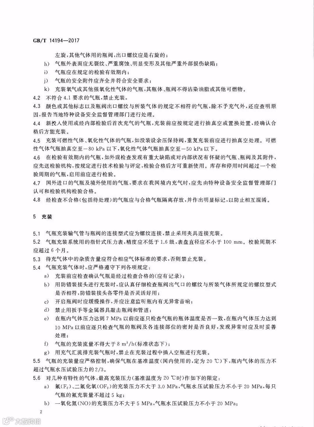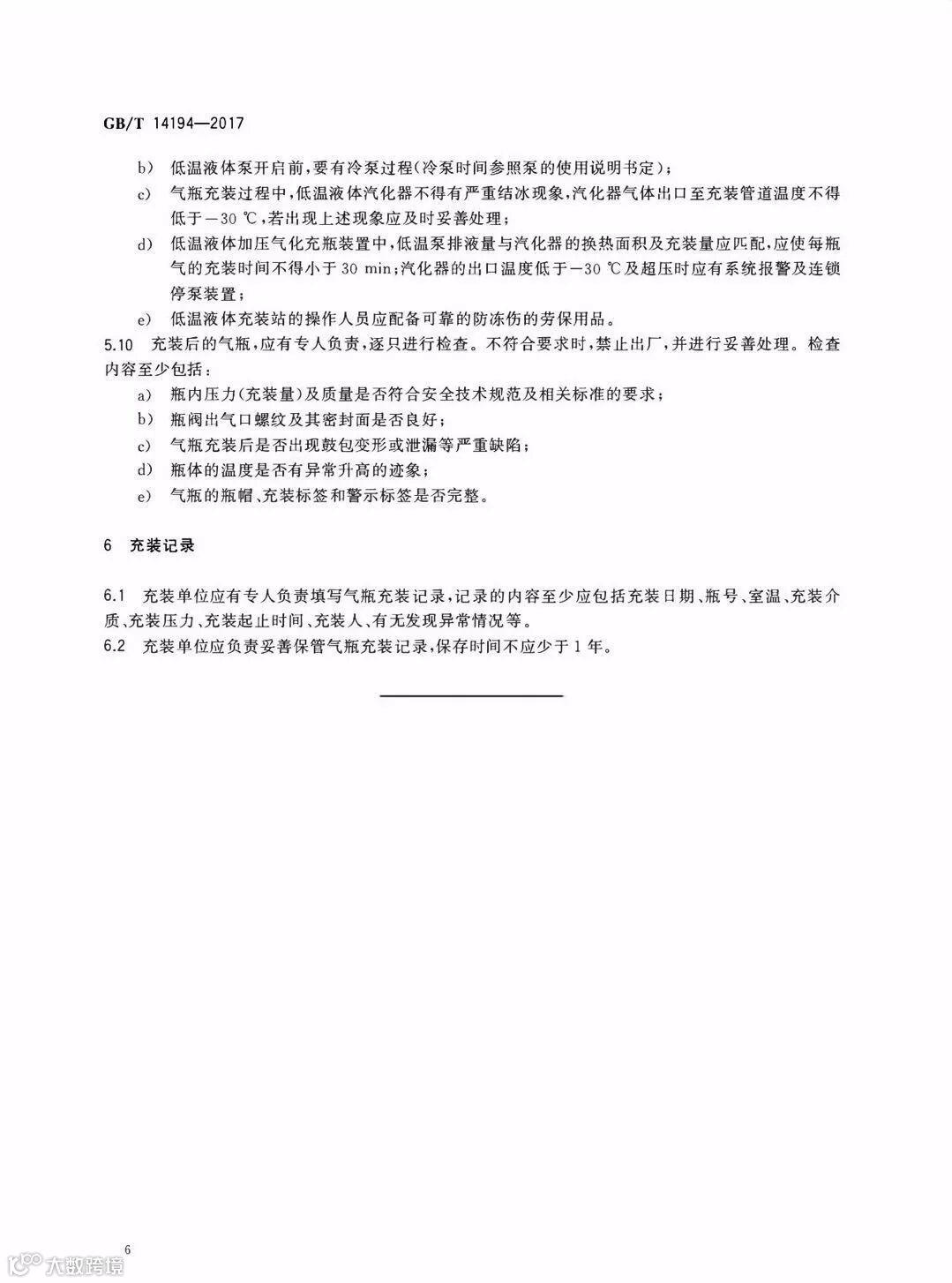 压缩气体气瓶充装规定