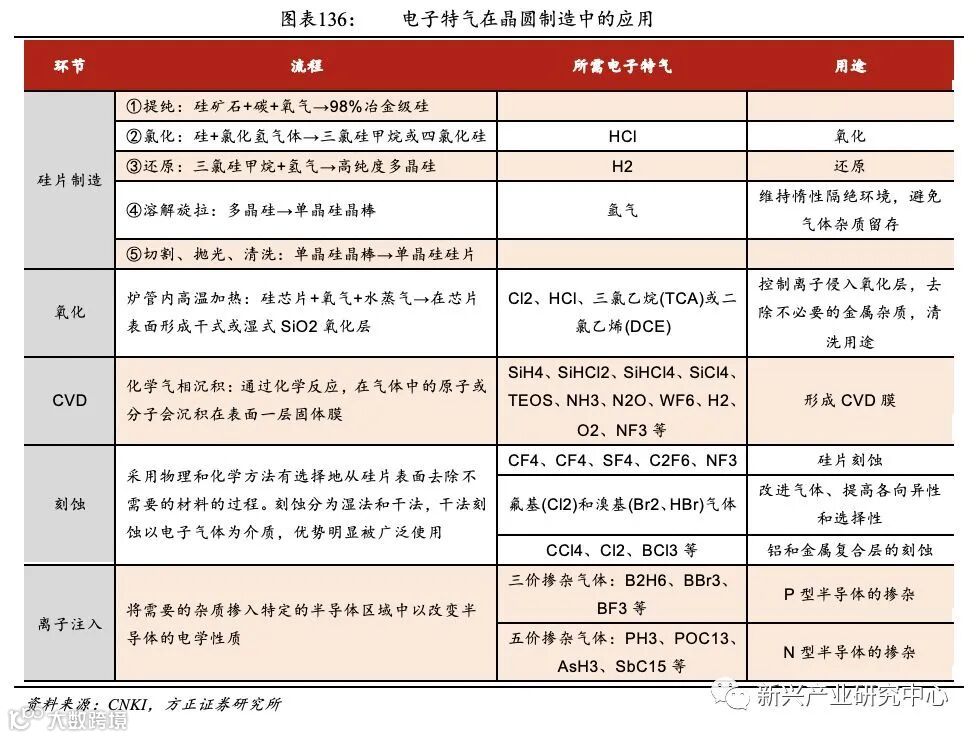 在整个半导体行业的生产过程中,从芯片生长到最后器件的封装,几乎每一个环节都离不开电子特气,而且所用气体的品种多、质量要求高,所以电子气体又有半导体材料的“粮食”之称。