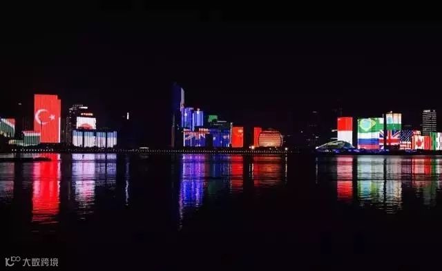 入夜后的钱江新城流光溢彩,