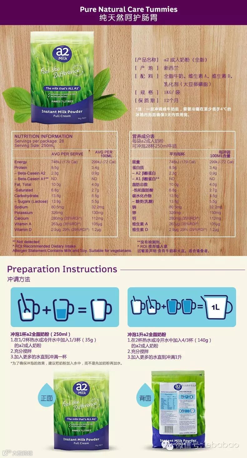 7、一袋1公斤的a2成人奶粉是用将近20斤的新鲜牛奶干燥喷粉而成,营养价值可想而知!