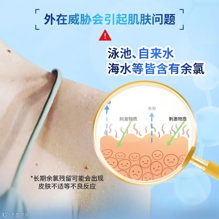 呵护皮肤屏障:温和清洁,避免氯对皮肤的刺激,适合敏感肌和儿童使用,帮助皮肤保持水分,防止干燥和过敏。 |