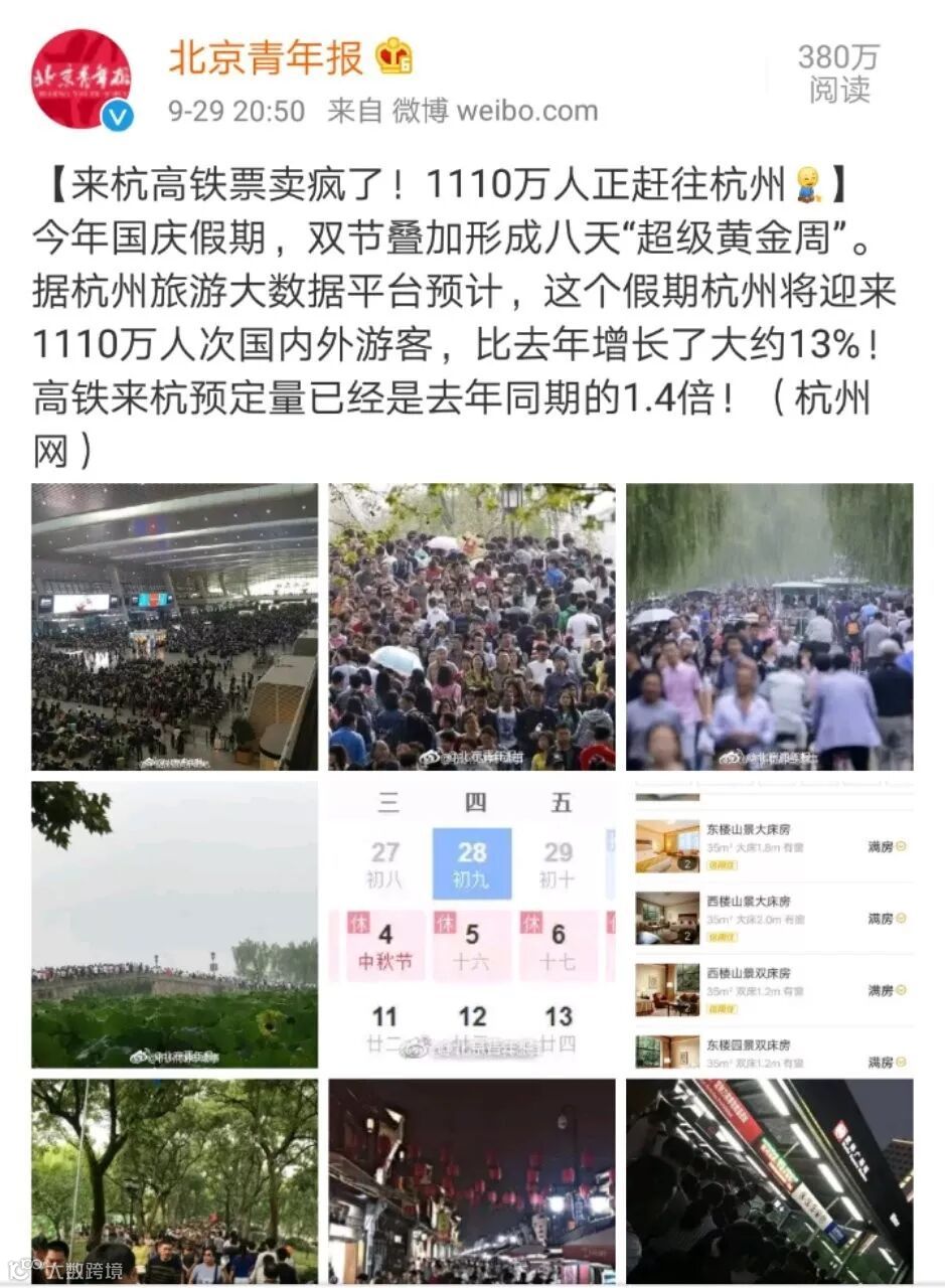 今年因为“国庆+中秋”的双组合8天假期
