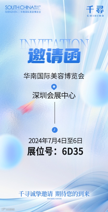 一年一届的华南国际美容博览会(South China Beauty Expo,以下简称“华南美博会”)于2024年7月4日已在深圳会展中心(福田)隆重开展。展会将持续3天。今日,千寻在6D35展位继续欢迎您们的到来。