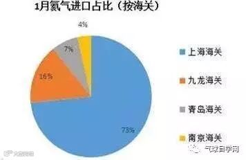 海关数据显示,1月我国氦气进口海关主要为上海海关,上海海关进口量占比为73%较上月有所增长。其次为九龙海关,其进口量占比为16%,再者为青岛、南京海关。
