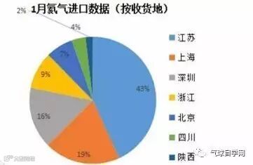 据海关数据显示,1月份氦气进口主要集中在江苏、深圳、北京、上海等地,其中江苏地区共进口111.3吨,占比43%。上海地区进口量50.1吨,占比19%;深圳地区共进口40.3吨,占比16%;浙江共进口24.3吨,占比9%。