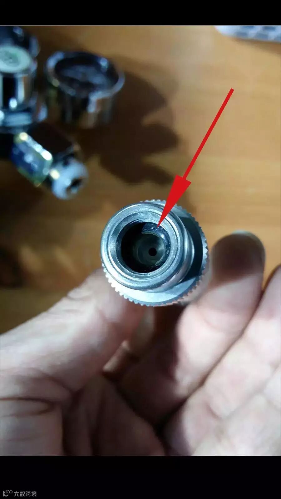 在这个位置,很多减压阀都会有一个胶圈,目的是增加气密性;但是如果安装不当,这个垫圈是会碎裂的。