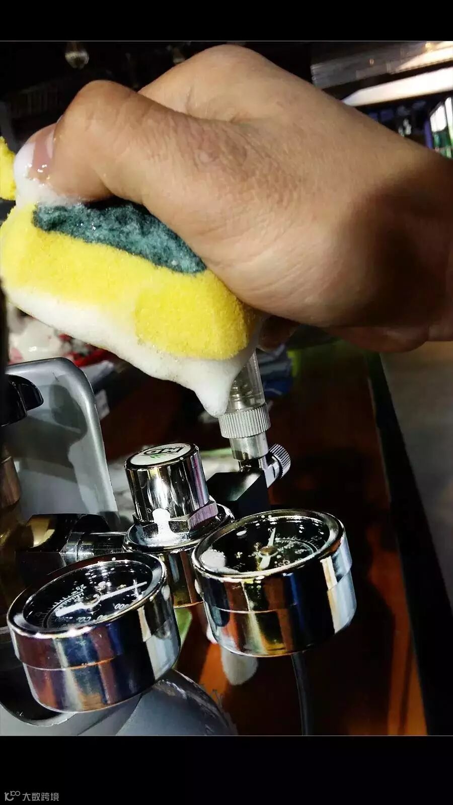 把泡沫挤在阀门的每一个位置,如图:观察有哪一个地方的气泡有被吹起来的现象,那个地方就是漏气的;