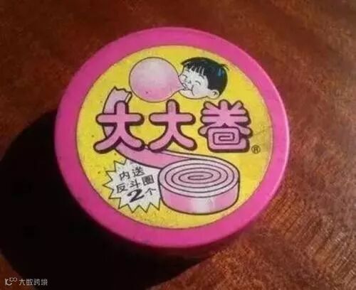 大大泡泡糖称得上是一款又好吃又好玩的小零食了,完完全全俘获了孩子们的心!早期时候都有附赠各种小玩具,长长的一卷可以吃好久。