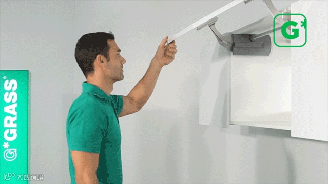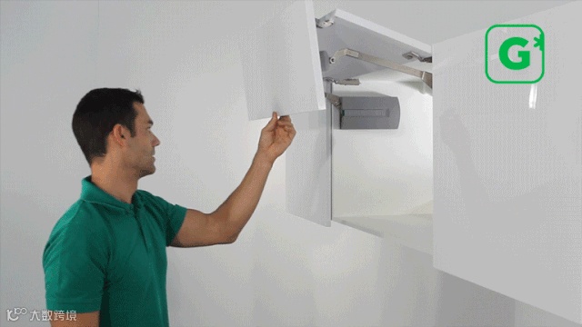 基于市场研究,格拉斯研发工程师在短短几年内,屡次在门撑领域实现颠覆性创新,以既有四种上翻门撑(豪华上翻,后翻,折叠上翻和平移上翻)为基础,于2017年研发出了一线牵下翻门撑,给吊柜开启方向更多选择,给空间更多可能。