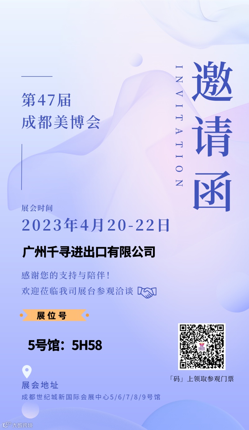 2023年4月20-22日第47届成都美博会,千寻进出口在5号馆5H58约定您~