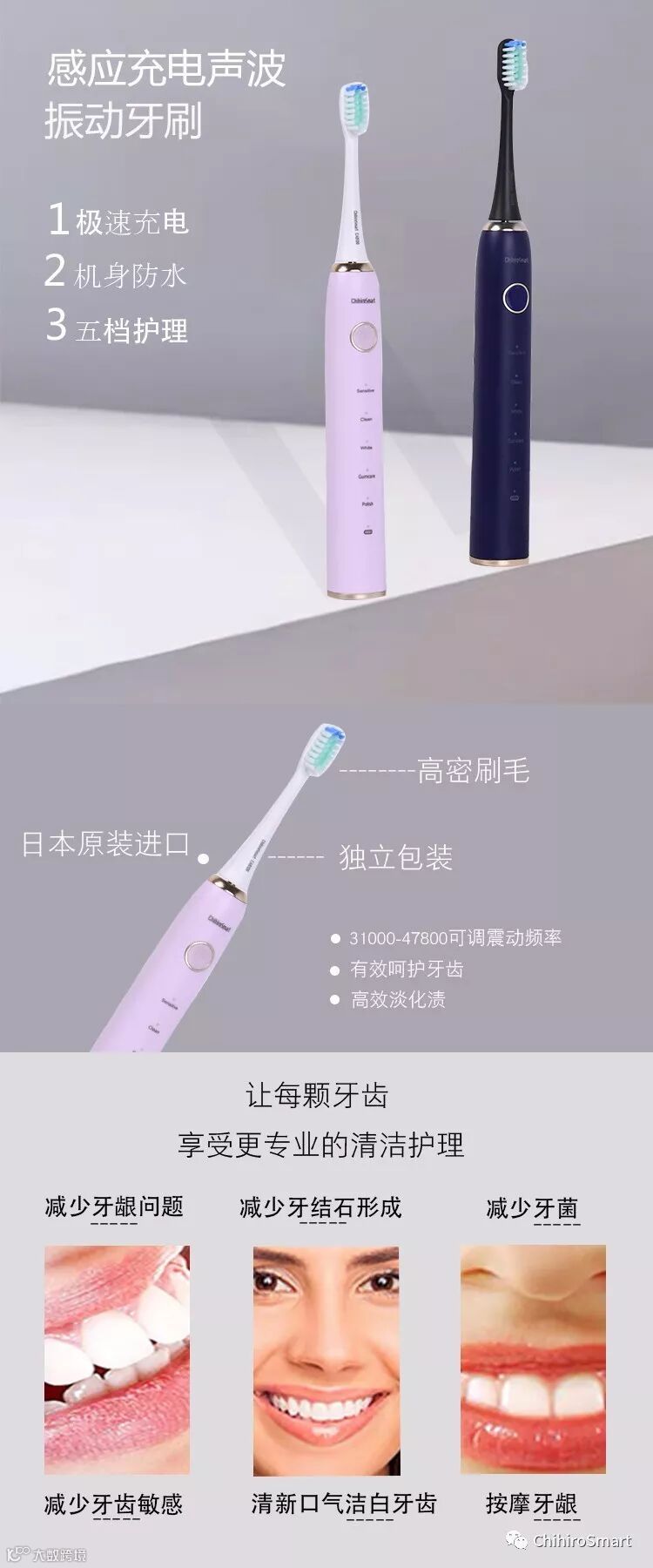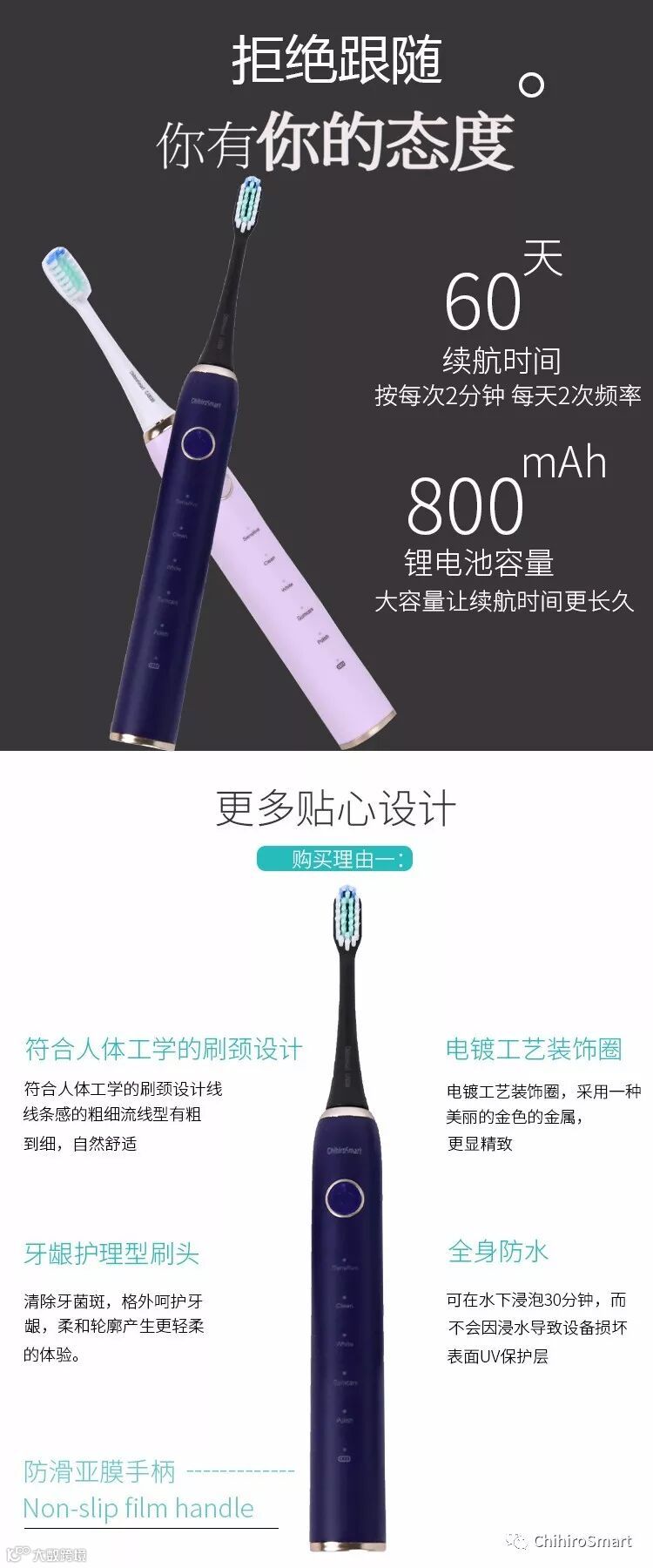 导读:充电式声波振动牙刷详情