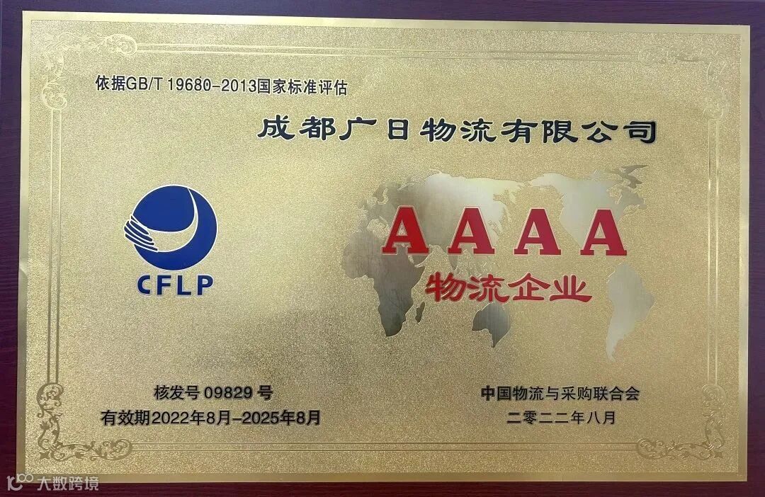 近日,中国物流与采购联合会正式为成都广日物流有限公司颁发“AAAA物流企业”牌匾。这是成都广日物流首次申报并经过严格的评审后获得的殊荣,充分彰显了成都广日物流优异之综合能力,同时也是公司发展历程中重要的里程碑,志着广日物流的品牌影响力、信息化技术和管理水平进入国内物流业的先进行列。