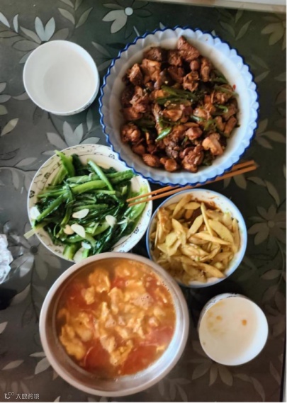 不管是何种食材,在我的眼里都是活泼跳跃着的,只要经过蒸煮、煎烤等方式,就能把它们变成一道道秀色可餐的美食。因为喜欢“吃”,所以变得喜欢“煮”。同事们总是调侃我是“铁丝儿裹脚 —— 没这么馋(缠)的”,或许这就是吃货的世界吧。我喜欢烹饪美食,更喜欢分享美食,经常邀请同事们到我家里品尝手艺。手握厨刀,细细雕琢快乐的生活;锅铲翻炒,慢慢烹调美妙的滋味;细火慢炖,静静享受幸福的时光。每次同事们品尝我做的饭菜后,都会发出一声声赞美的惊叹。看到他们的“光盘行动”,我发自内心地感到欣喜与自豪。