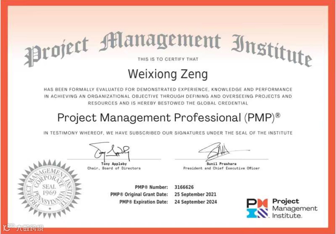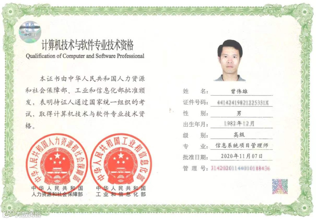 从软件开发岗转向项目管理岗后,为更好的适应岗位需求,2019年年底,曾伟雄同志主动报考了全国计算机技术与软件专业技术资格培训,自此,每逢周六日和节假日,当别人阖家团聚、共享天伦时,他总会默默的背上书包到培训机构指定地点参加培训,即便后来因疫情影响,线下培训转为线上网课,考试时间一再延迟,他也丝毫不放松学习,每天坚持温书学习,时刻准备好等待着考试的到来。终于在2020年,他成功考取了信息系统项目管理师认证;2021年,荣获PMP项目管理国际资格认证,接连拿下项目管理领域含金量最重的两个专业证书。