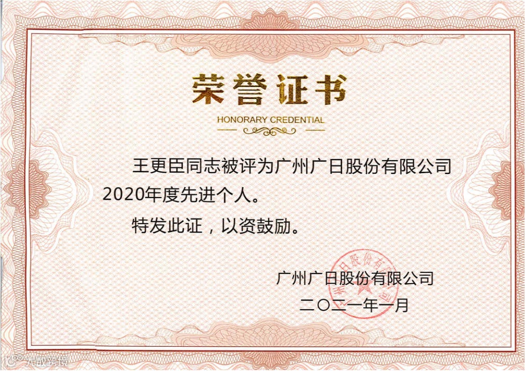 一直以来,他战斗在生产第一线,以奉献践行初心使命,以务实砥砺前行,始终积极拼搏、昂扬奋进。2020年,王更臣同志荣获广州广日股份有限公司和广日物流先进个人荣誉称号。