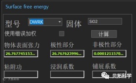 ↑ 通过两种液体与样品的接触角值计算离型膜的表面能(OWRK法);