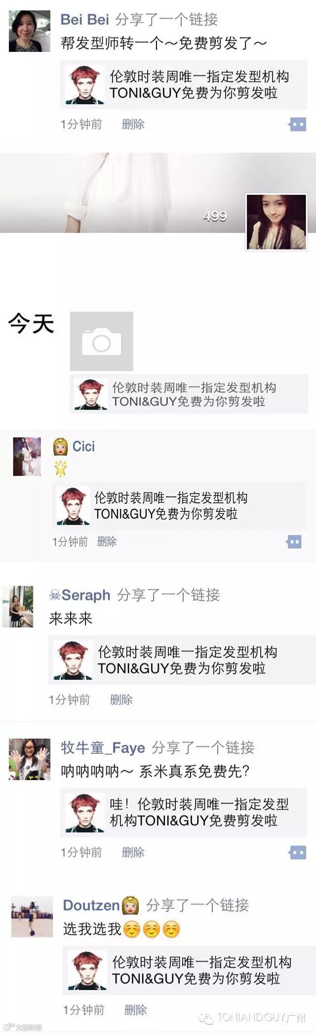 轻触箭头指向,添加TONI&GUY广州官方微信号