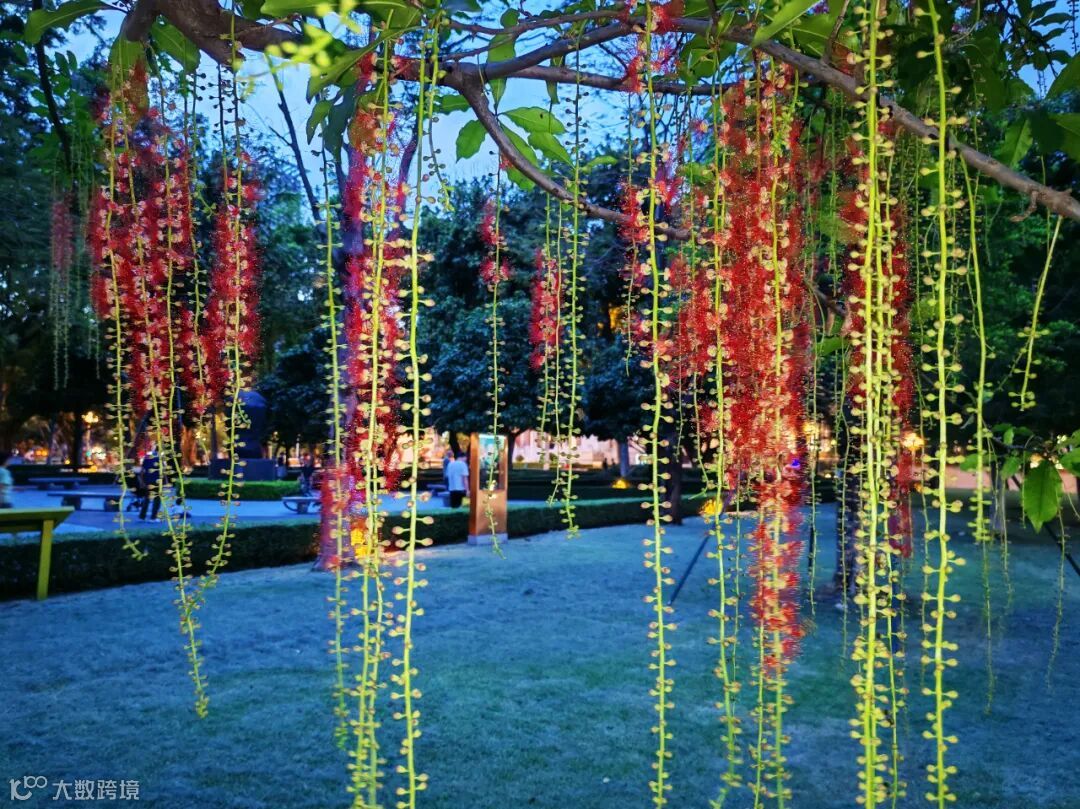 七月,珠江边晚风轻拂,暮色如纱漫上水面。此时,广州市人民公园的红花玉蕊,在渐暗天色中热烈绽放,将积蓄一季的浪漫倾洒而出。垂落的花串仿若绯色流苏,于晚风中摇曳生姿,为暮色里的公园晕染出一抹迷人的红色浪漫。
