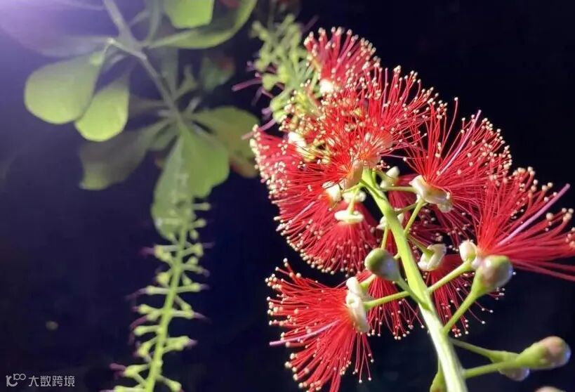 属玉蕊科叶集生枝顶,呈椭圆形或长倒卵形;总状花序生于无叶老枝,下垂且长,花瓣乳白色,花丝深红色。华南地区花期6至8月,具“暮开朝落”特点:下午4点抽蕊,5点舒展,次日凌晨闭合;花序可垂至半人高,花朵密集,整树花期约一周至半月,因“限时”显珍贵,有“月下美人”之称。