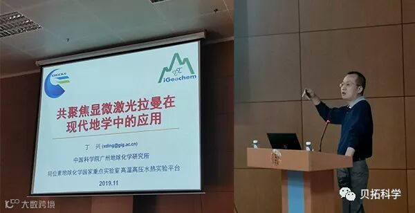 中国科学院广州地球化学研究所丁兴副研究员作了题为《共聚焦显微激光拉曼在现代地学中的应用》的精彩报告。丁老师结合他的工作分享了系统搭建以及实验技巧及精彩的实验成果。从玻璃中水含量的测定、矿物表面分布及三维结构成像分析、高温高压原位实验系统的实现。