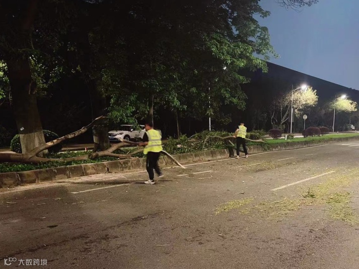 绿艺公司接到通知后火速组织应急抢险队伍前往处理,于23日凌晨1点恢复区域道路畅通。随后,绿艺应急抢险队伍连夜检查区域内所有树木种植情况,做好支撑加固工作,凭借良好的服务态度收获业主的好评和肯定,以今天的现场赢得明天的市场。
