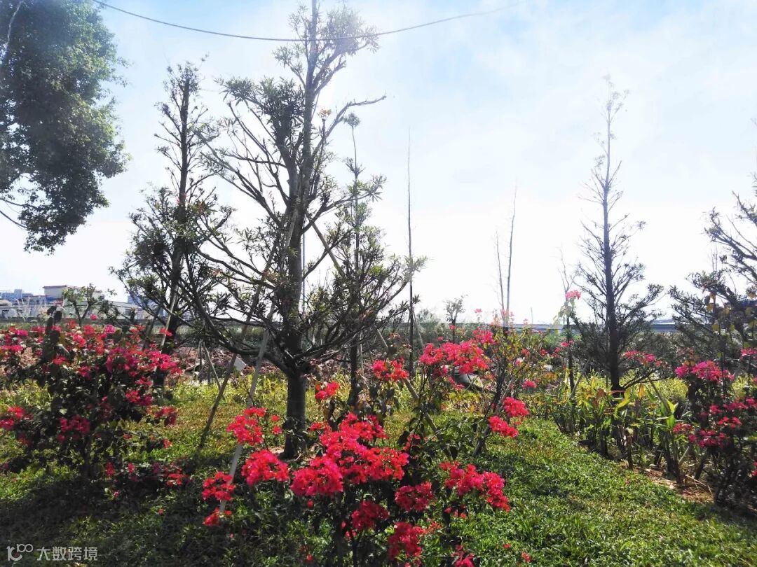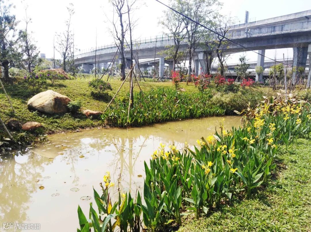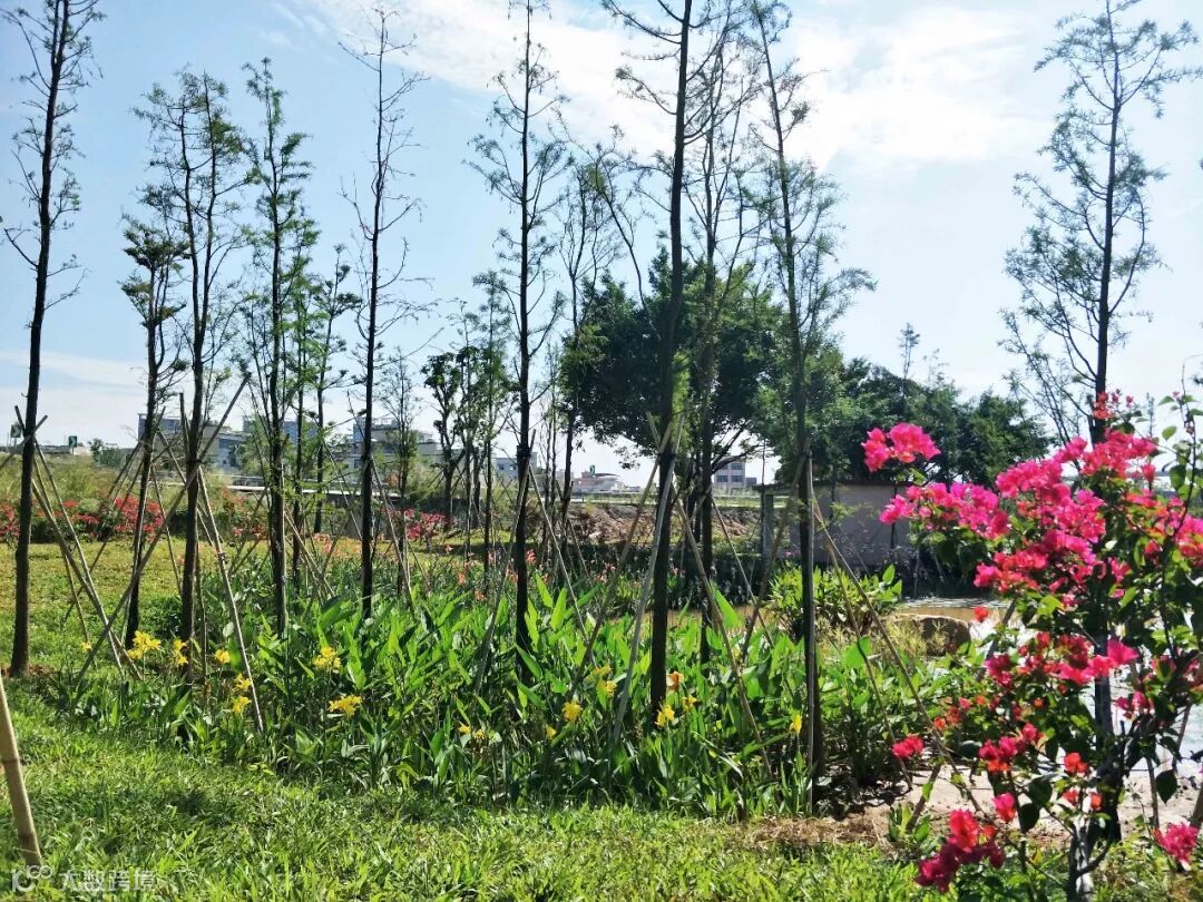 3.绿化部分:绿化改造面积约18万㎡,清理砍伐树木648株,种植乔木3060株、灌木1922株,地被约17.6万㎡,水生植物约5531㎡,景石约1100吨。此工程主要完成种植了大腹木棉、红花紫荆、樟树、桃花心木、宫粉紫荆、细叶榄仁、人面子、蓝花楹、凤凰木、火焰木、大叶紫薇、黄槐、黄花风铃木、紫花风铃木、细叶榕、菩提榕等乔木共3060株;种植了红花勒杜鹃、角茎野牡丹、粉花夹竹桃、嘉式羊蹄甲、紫云藤等灌木1922株;种植了龙船花、毛杜鹃、红继木、蜘蛛兰、黄金叶、大叶油草等地被约17.6万㎡。