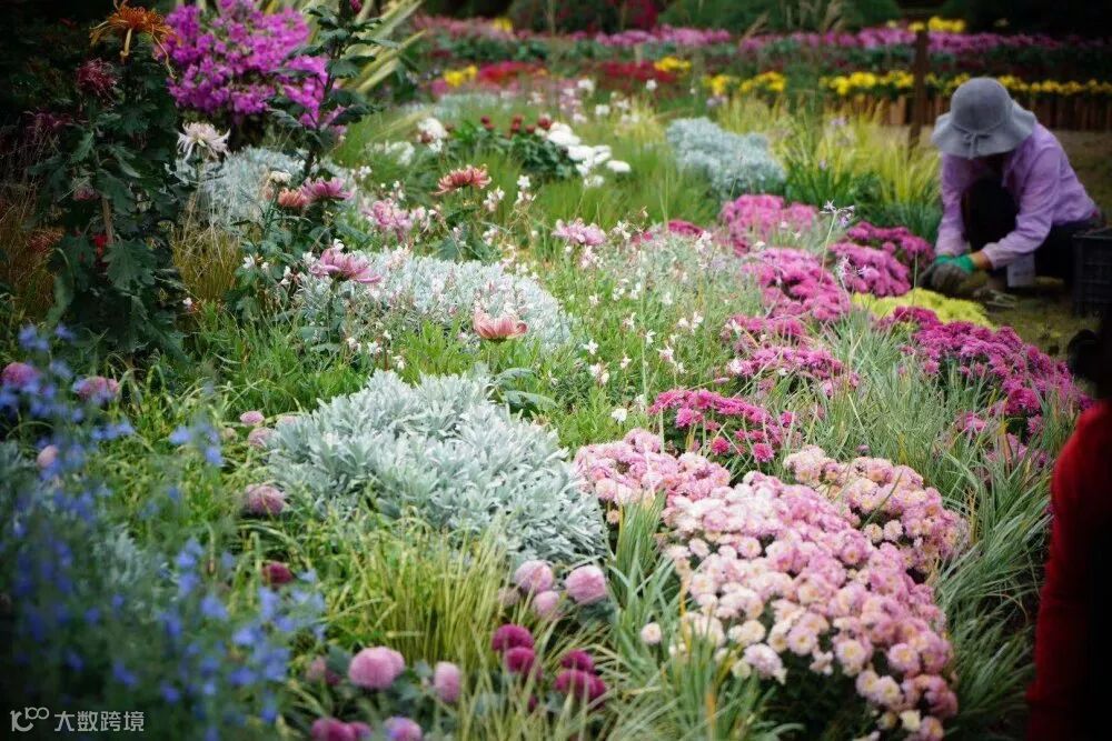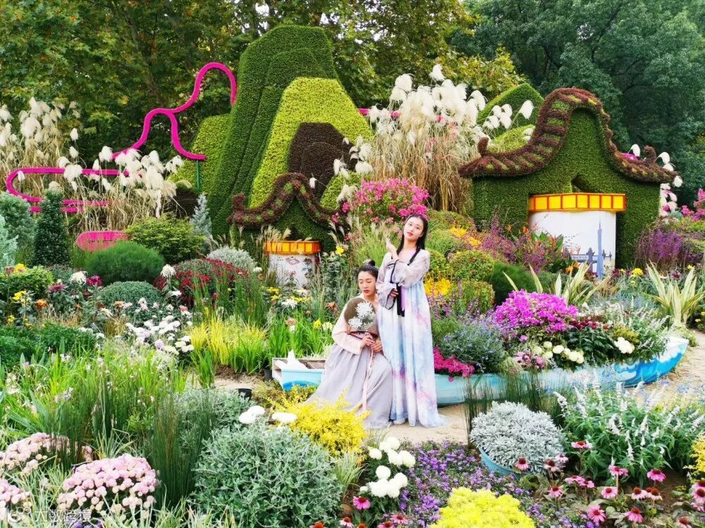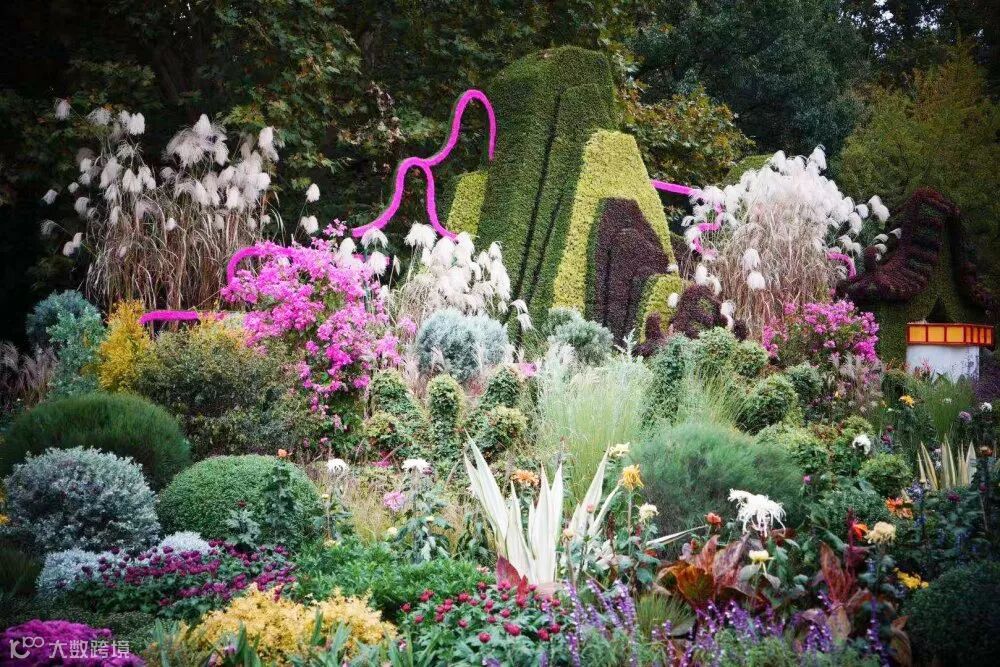 在尊重传统菊文化主题的背景下,将菊花按照色彩、造型、株型等进行规划,并拓展了松果菊、荷兰菊、乒乓菊、芙蓉菊等菊类的引入。在配置手法上,每一处菊类都采用竖向型或者色彩调和型植物、复合型种植进行平衡,由此避免大红大紫成堆连片出现。整体花卉中,菊类如造型菊、球菊在月底盛开会形成强烈的彩色效果,形成大众喜闻乐见的传统表现形式。