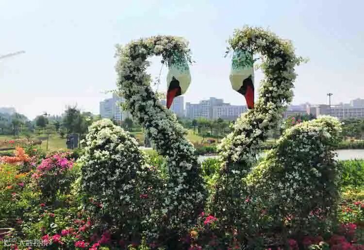 此次花展重点打造了扬帆起航、彩龙戏珠、朱雀翠舞、树屋童趣、海枣生兰等深受群众喜爱的小园圃作品。展示的簕杜鹃有50多个品种,约60000盆,造型簕杜鹃88盆。