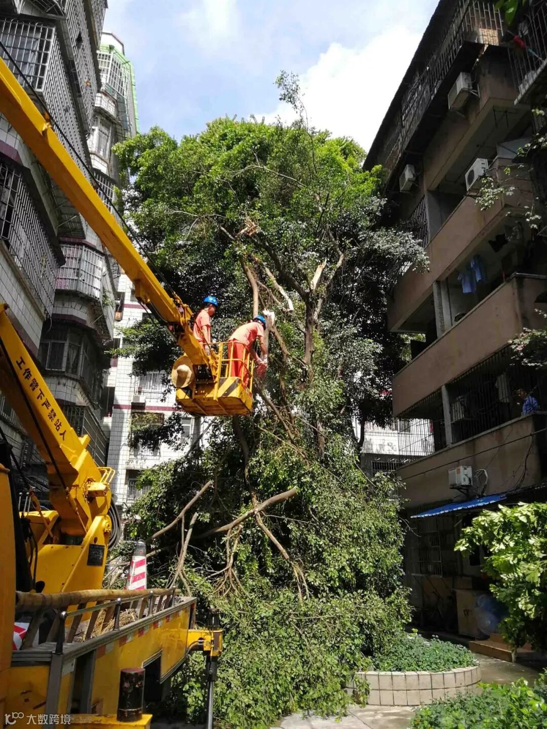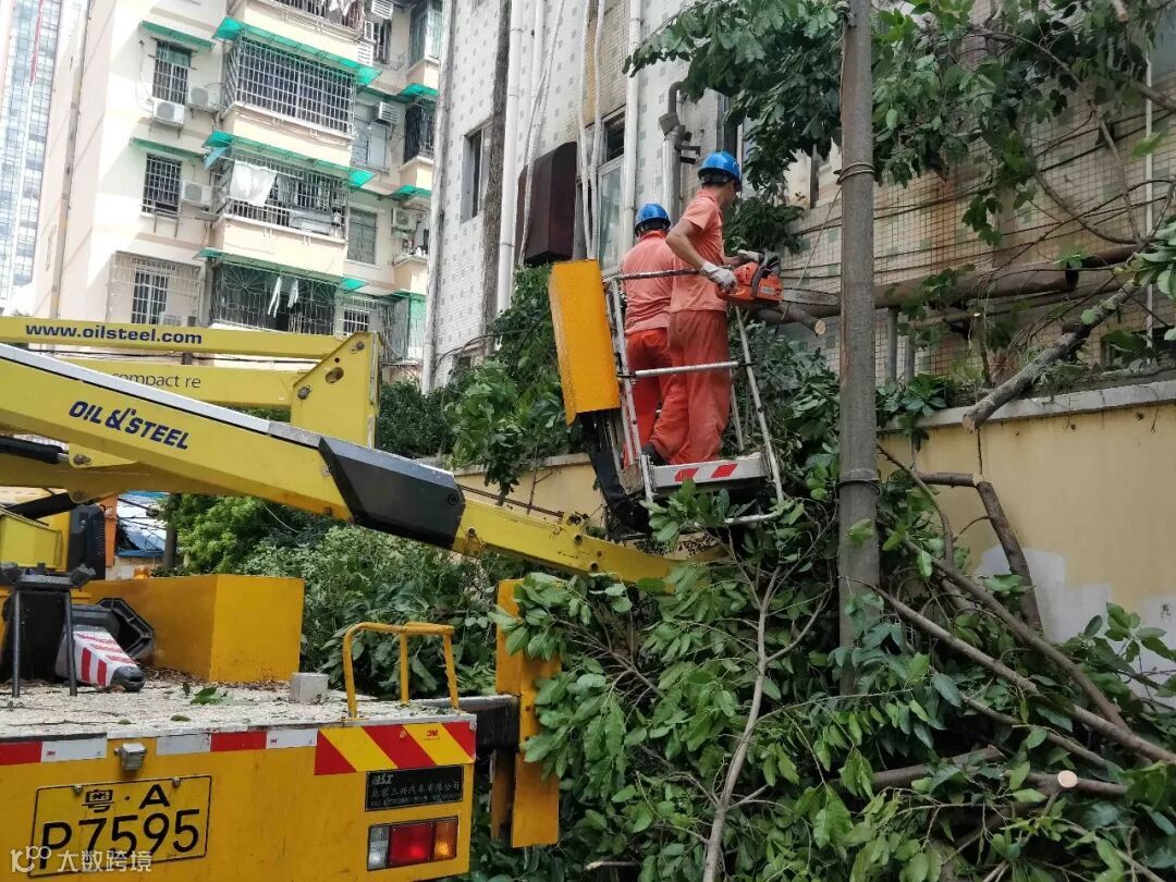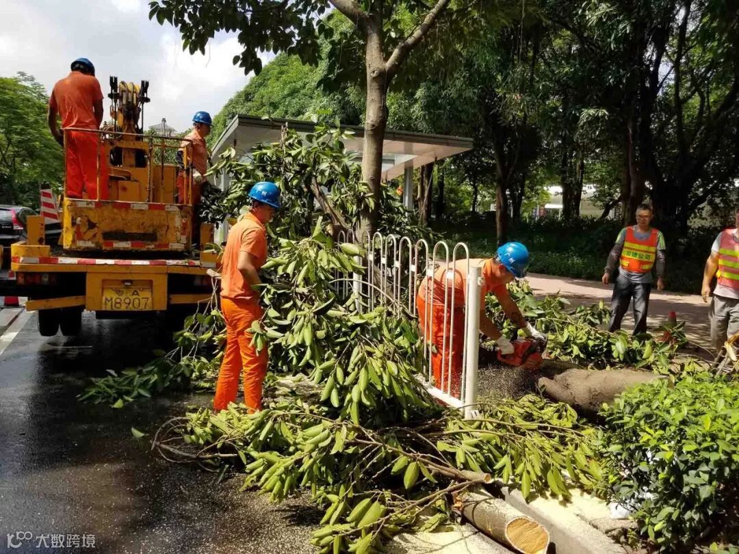 接到报案后,绿化抢险队立即响应,组织队伍奔赴抢险现场。抢险指挥人员详细了解、询问现场的具体情况,判断现场可能存在漏电等安全隐患,迅速将该情况上报抢险队指挥中心。为更好地保障抢险作业的安全,经协商,最终将抢险作业时间延后至第二天上午。25日清晨,抢险队再次出动,派遣专业高修车辆前往协助,经过3个小时的奋战努力,圆满完成全部抢险作业及清理工作。