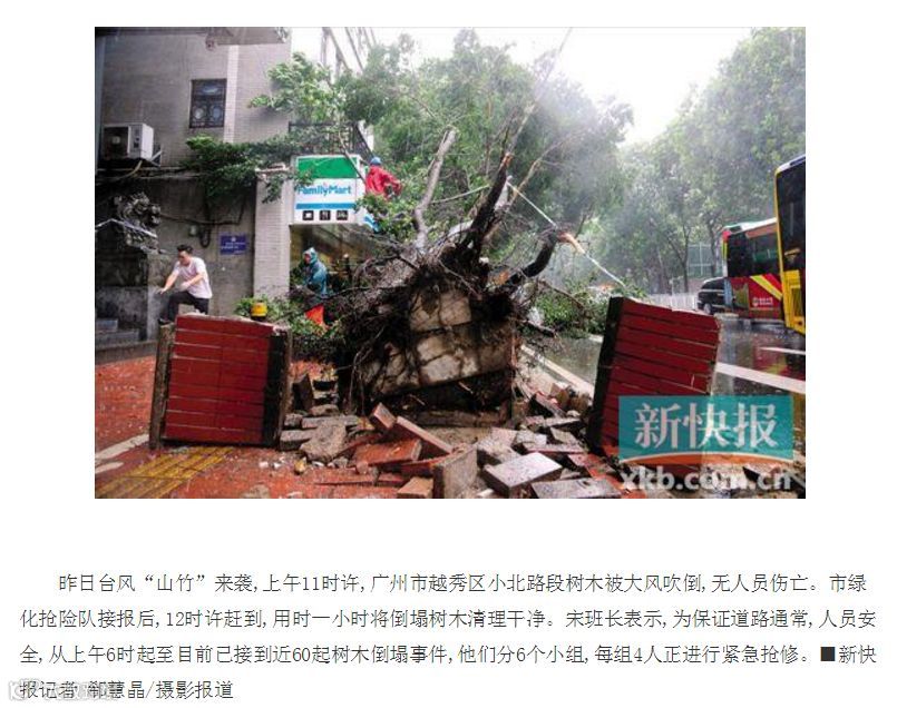 今年第22号台风“山竹”于2018年9月16日17时在我省台山海晏镇登陆,广州市绿化公司严阵以待,全力协助市政府开展应急防御、抢险救灾各项工作,保障人民生命财产安全。