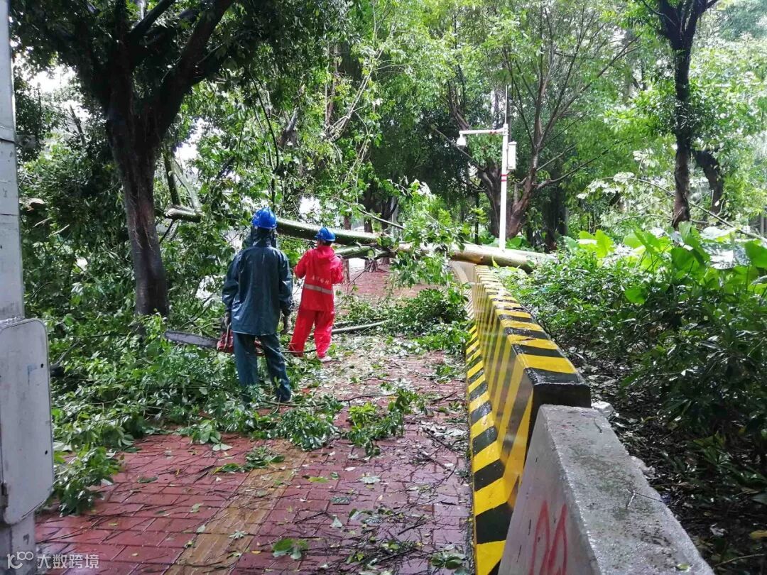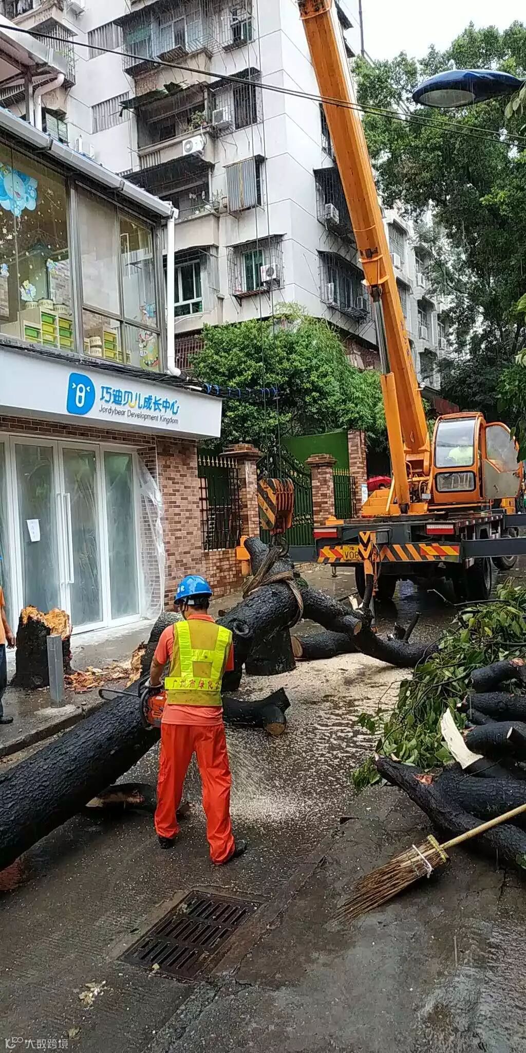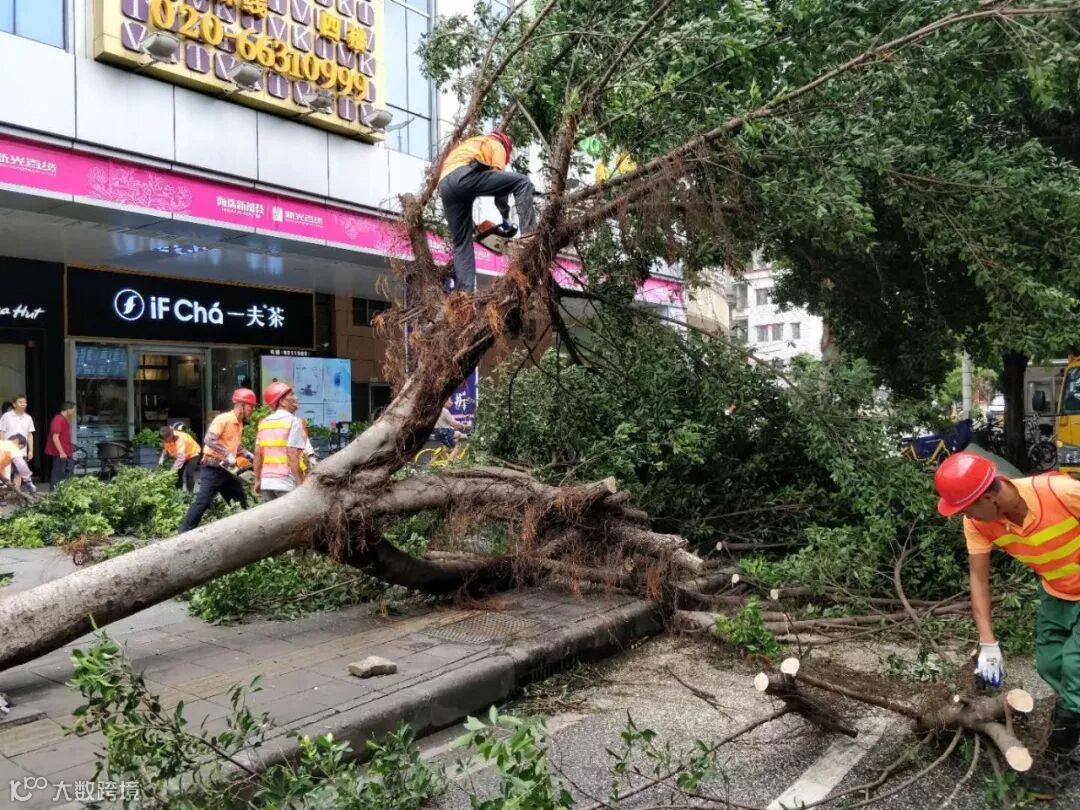 在此,我们也再次向这群平凡英雄们说声感谢!祝愿台风过境之处,一切平安!绿化抢险工作仍在有序进行中,为了您的安全,“绿巨人”一直为您保驾护航。