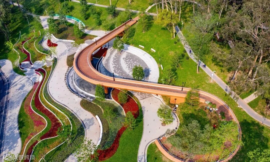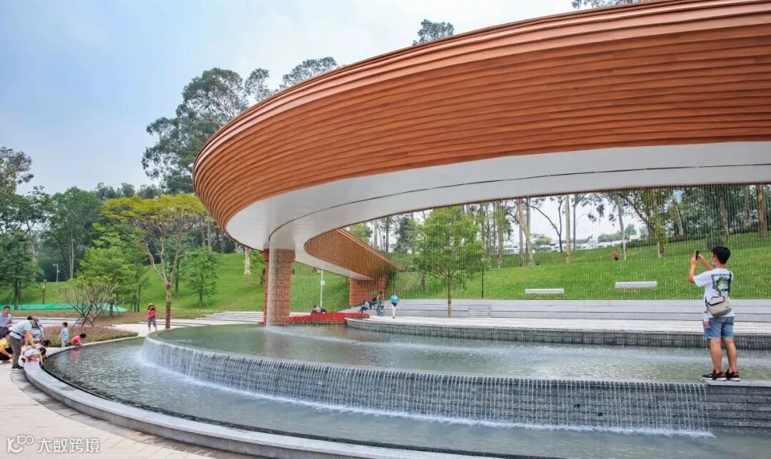 项目位于华南理工大学广州国际校区内,按照生态公园标准建设,尽可能弱化工业建筑元素,整体绿化率大于50%。由东至西结合宜玩、宜游、宜停、宜赏,分区设计不同景观空间。在现状水体的基础上打通部分水系,适当改造驳岸,营造不同的滨水休闲空间。结合不同地块功能性质,设计栈道,台阶,临水道路、草坡入水等多种驳岸形式,形成丰富的滨水休闲体验。地面景观湿地系统利用生态植草沟处理雨水和部分达标再生水作为景观水源,融入岭南建筑风格的景观建筑,形成独具特色的城市生态公园,把污水处理设施打造成市民群众乐于接受的地上环境友好型城市景观亮点。项目荣获2023年度广东省市政工程安全文明施工示范工地。