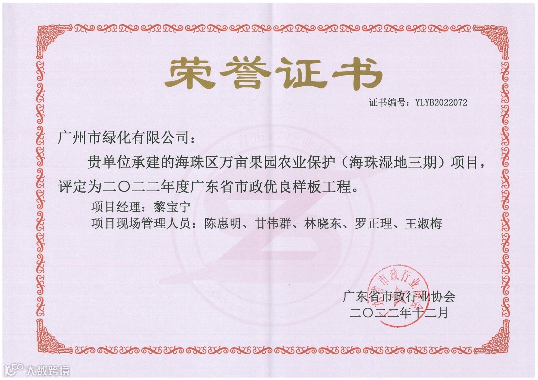 1、广东省市政优良样板工程