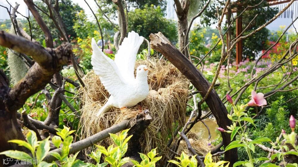 园圃内设计象征海珠作为“海上丝绸之路”起点的轮船立体绿雕,预示着海珠区将会乘风破浪,勇往无前的坚定信念,还设有象征海珠湿地枯木水鸟,广州南肺的特色景观及优厚的地理条件,回应设计主题与多方面展现海珠特色。
