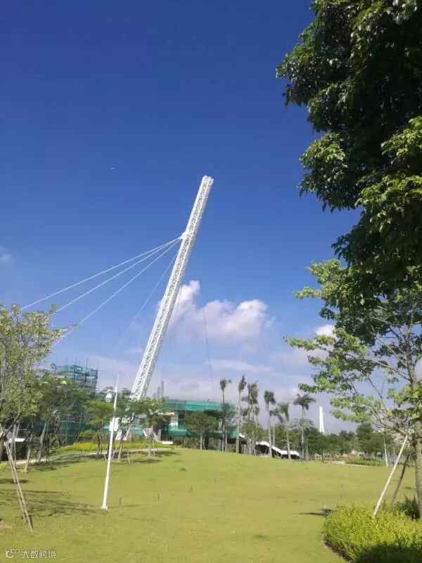 本工程软基处理与观景眺望台为工程的控制难点,软基处理的区域面积为48207㎡,采用塑料排水板堆载预压工艺。建筑面积约4600㎡,其中观景眺望台结构高度两层,建筑面积1218㎡,第二层空间钢网架,钢桅杆46米高,为工程的重要质量控制点,钢网架采用正方四角锥做为基本单元体,通知螺旋球节点组合形成网架。桅杆长46.5米,重量27.8吨于地面成70度夹角,采用150吨的吊机整体一次吊装成型。完工后的观景眺望台屹立在南沙蕉门水道之滨,像一艘巨大的帆船寓意南沙明珠湾从此扬帆起航。