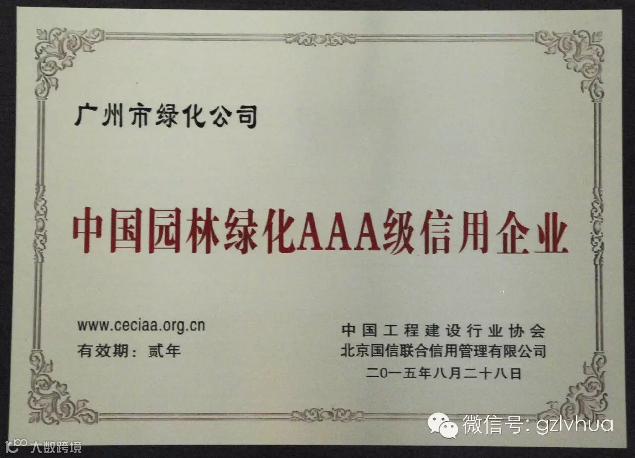 9月23日,经过近2个月的资料申报和审核,市绿化公司顺利通过了中国工程建设行业协会、北京国信联合信用管理有限公司的评审,被评为“中国园林绿化AAA级信用企业”,同时获评为“连续八年中国园林绿化AAA级信用企业”。