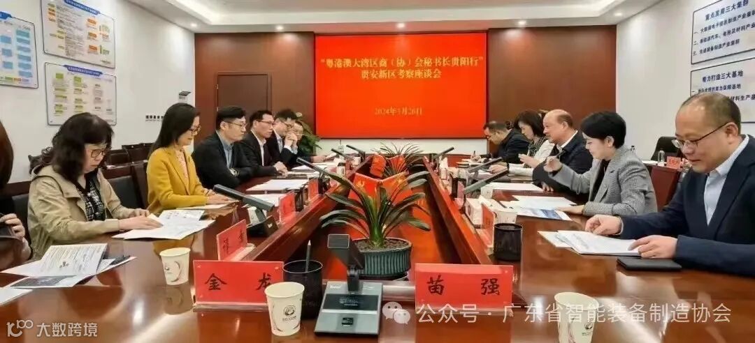 3月25日-27日,广东省智能装备制造协会秘书长苗强、广东高科技产业商会秘书长王宪永、广东省新能源企业产业协会秘书长周发涛、广州市科技金融促进会秘书长何清欢、广东工业新材料协会秘书长贾锐、广东省室内环境卫生协会副会长高峰、广东省数字产业联合会秘书长金龙、深圳市高质量发展促进会执行秘书长陈灵志、深圳市人工智能协会常务秘书长谭素、前瞻研究院联合创始人刘珊源等十家大湾区行业协会秘书长考察贵阳,此次考察活动由我会协助贵阳市驻广州(深圳)办事处举办。