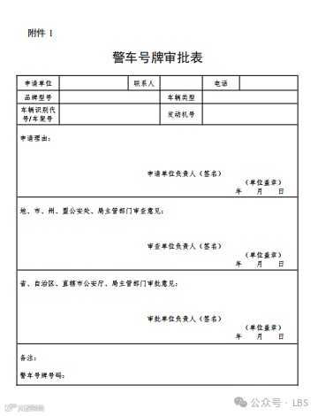 附件1:警车号牌审批表